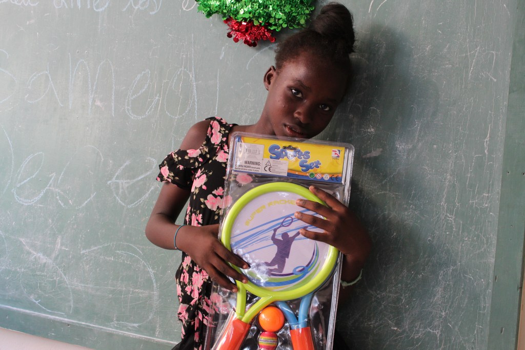 Hormis les jouets comme les pistolets, les enfants ont reçu des voitures, maisons, jeux de raquettes, entre autres. Ces jouets ont été recueillis suite à une campagne de collecte de fonds et de jouets réalisés sur les réseaux sociaux, et qui a obtenu le soutien de plusieurs dizaines de personnes, explique Éberline Nicolas, présidente de la structure organisatrice.